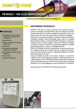 PERIGOL® 100 este un produs anticoroziv fără conţinut de solvent, constant la hidroliză şi ne-emulsionabil în apă. De utilizat pentru protecţia anticorozivă temporară, în special la metale pe bază de fier, oţel pur sau parţial zincat şi fier turnat, dar poate fi folosit şi la alte tipuri de metale.
